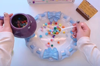交警俯身帮小女孩系好头盔,小女孩递出棒棒糖回应善意
