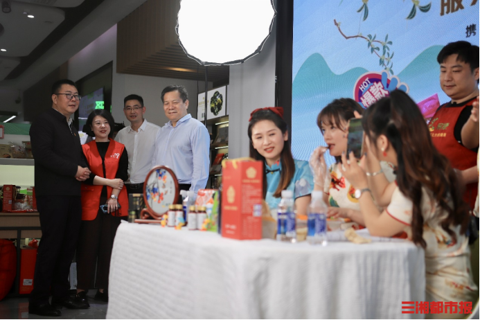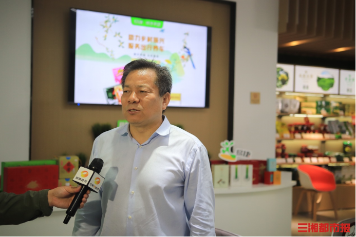 湖南石油分公司代表、党委书记丁建华百忙中莅临直播现场调研工作。丁书记一行参观了农业扶贫产品展厅,详细了解了直播工作开展情况,慰问了现场工作人员。丁书记表示,中国石化湖南石油依托全省1800多座加油站和易捷便利店,利用线上线下渠道优势、以渠道带销售、以销售带产业、以产业带振兴,提振消费。他指出,2022年以来,湖南石油引进湖南乡村名优特产400多个,累计实现销售额1.12亿元,以平台优势,推动乡村振兴取得新成效。