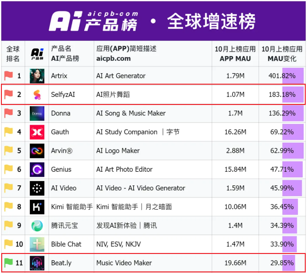 据悉,作为一款面向红人及视频创作者的定制化音乐视频创作工具,Beat.ly在全球40多个国家/地区的Google Play上排名前十,总用户超1亿。该软件通过提供海量转场及视频特效、视频模板、无版权音乐等资源,能满足用户制作卡点视频、完成短视频配乐等需求;在AIGC时代,Beat.ly创新提供AI风格模板,用户可一键将照片转换成各种艺术风格的图片。
