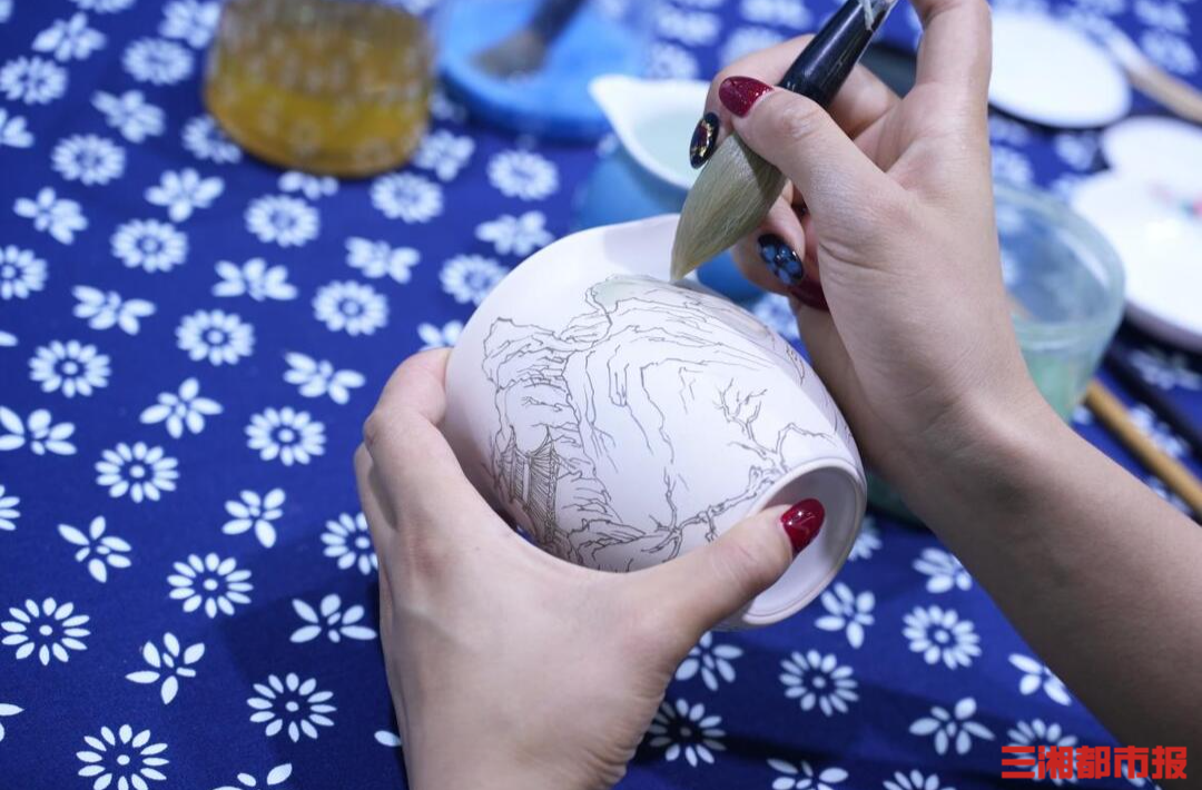“形态很美,釉面也很光滑,非常漂亮!”展厅现场,陶瓷工艺师刘慧芳正在展示釉下五彩瓷的描画技艺。当细腻的色线勾勒出峰峦轮廓,多彩颜料铺出山水意境,古老的东方艺术让乌干达采购商Karim折服,在家乡经营厨具店的他,每年都会来中国采购一批瓷器,“第一站就是醴陵,去挑选最新的陶瓷产品。”