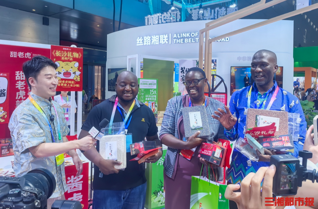 “湖南人民太热情了!”来自津巴布韦国家电视台的AEMIRE HUNI在湖南文旅展厅被“投递”了各种湖南礼物:大米、臭豆腐、茶叶……而AEMIRE HUNI最喜欢的,还是来自湖南博物院的文创冰箱贴,“因为湖南深厚的历史文化,这些文创产品做得非常有创意,这非常棒!”