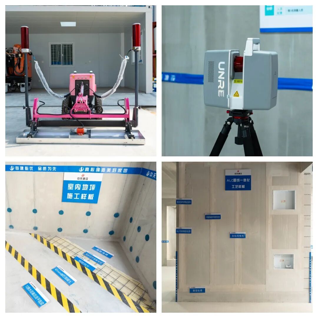 在施工过程中,地面整平机器人、地库喷刮打磨一体机器人和实测机器人,也成为了助力工地的优秀工友。这些搭载了智能运动控制算法、高精度激光识别测量和实时控制技术的机器人,在施工精度、效率提升和降低工人劳动强度等方面表现出色。在长沙炎热的夏季,不仅能够完成高强度的工作任务,保障施工质量,也缓解了一线工人的工作负担。