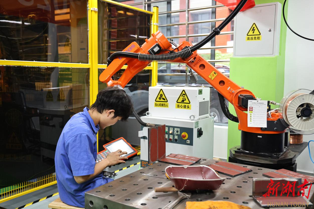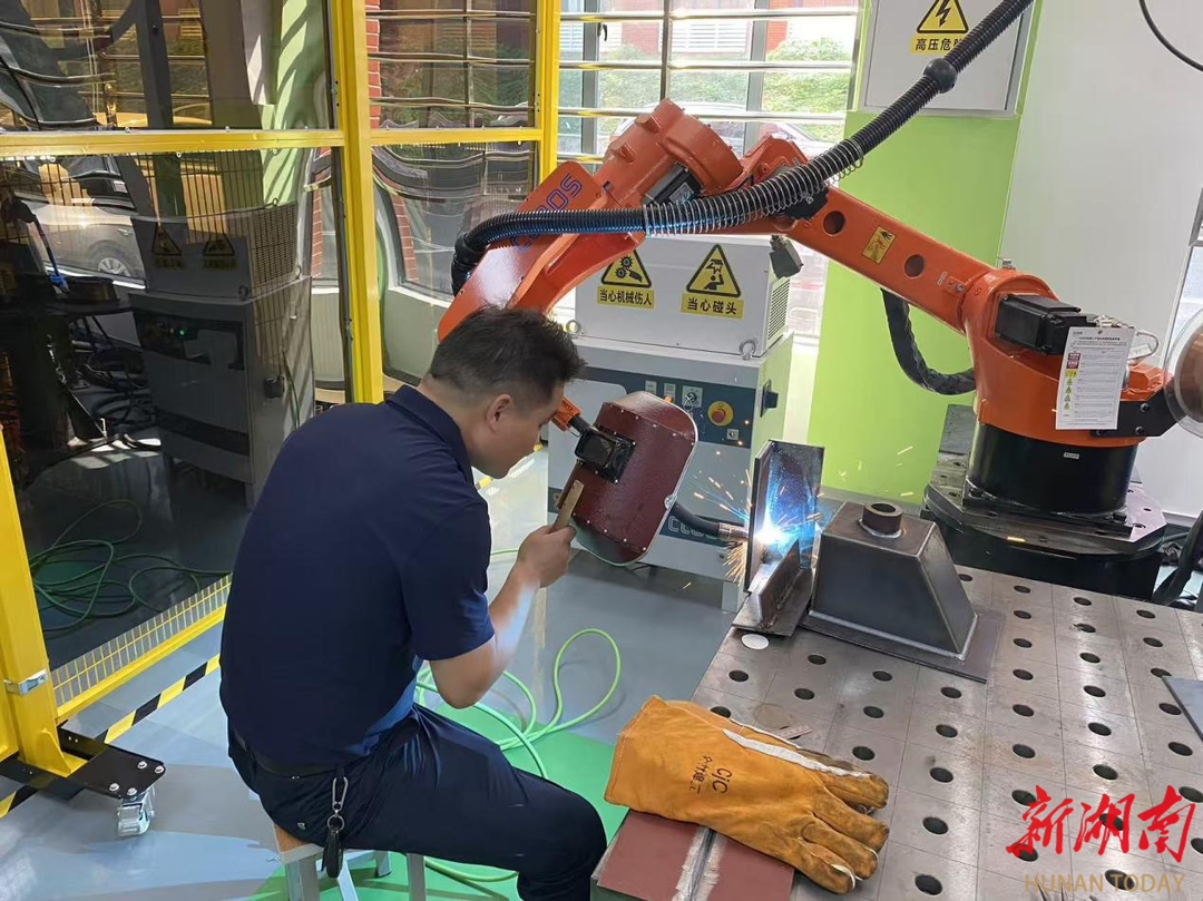 湖南日报10月17日讯(通讯员 王露曼 宁振)编程设计落定后,工程师按下启动键,工业机器人手臂随即精准运转——弧光闪烁、火花四溅间,试件表面很快成型一道平整光滑的焊缝。近日,湖南工业职业技术学院中联产业学院的智能焊接工艺研究中心内,“智能焊接技能提升”专项培训正火热开展,来自中联重科等企业的6名技术骨干重返校园“充电”,专攻智能焊接领域的技能精进。