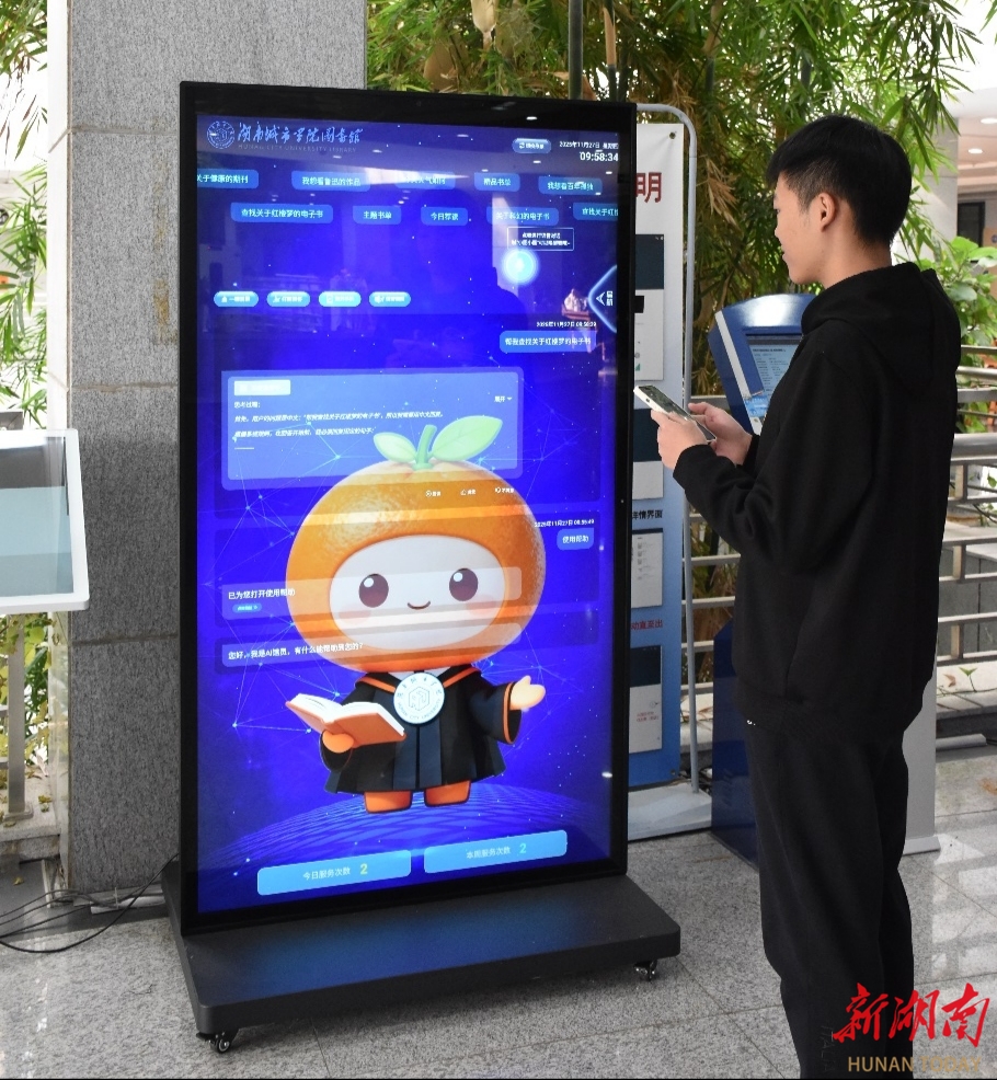 为深化智慧图书馆建设,提升知识服务效能,该校图书馆正式推出AI馆员“橙小图”。读者只需登录湖南城市学院图书馆官网,点击首页的“AI馆员”图像,即可与“橙小图”进行对话,享受智能化服务。同时,为增强互动体验,图书馆二楼大厅同步启用AI数字人交互屏,支持语音对话、扫码互动等多种方式,让知识获取更直观、更生动。