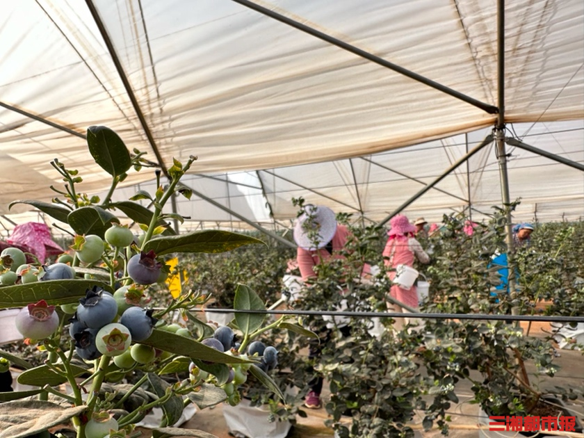 (▲云南蓝莓今年大丰产,当地新农人准备开拓新的销售渠道,借助拼多多等电商平台把高品质的蓝莓卖好。图为云南建水的果农在大棚里采摘蓝莓。图:朱博)