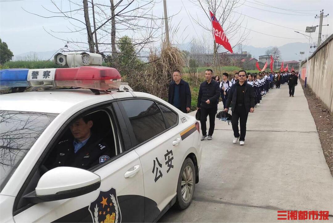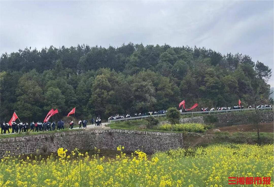850名师生徒步从慈利四中出发,至垭门关抗日阻击战旧址,往返全程15公里。一路上,春风微拂,山雀相伴,春花烂漫,沁人心脾。师生们共同欣赏到了“嫩蕊商量细细开”的沿途美景,体会到了“读万卷书,行万里路”的人生乐趣,有的弹奏吉他、唱红色歌曲,有的打快板、喊口号,有的进行成语接龙比赛……