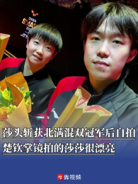 10月3日晚,王楚钦/孙颖莎斩获WTT中国大满贯混双冠军后自拍,这次奖杯好重,楚钦负责拍照,最后拍出来的莎莎很漂亮。(视频:李青)