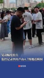中国地震台网正式测定:10月12日15时21分在四川雅安市芦山县(北纬30.48度,东经103.09度)发生4.7级地震,震源深度10千米。多处监控记录下芦山地震发生瞬间,可以看到画面晃动幅度较大。此外,四川成都、乐山等多地也有震感。(据央视新闻 剪辑:陈力量)