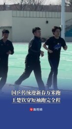 2月11日,北京。国乒运动员牛冠凯在社交媒体晒出国乒迎新春万米跑的视频,王楚钦穿短袖跑完全程。