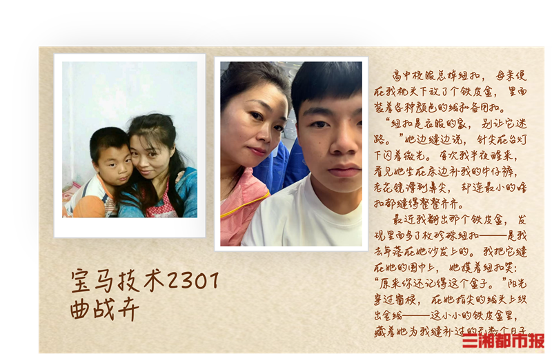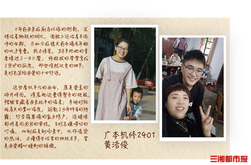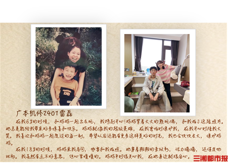 湖南日报5月14日讯(通讯员 刘欣雨 麻珂全媒体记者刘镇东)“看着旧照片,突然想起小时候妈妈俯身整理我衣领的情景,这次换我主动拥抱她……”近日,湖南汽车工程职业大学车辆运用学院举办了一场“复刻时光,重温母爱”的主题活动,在校园内迅速掀起了“感恩母爱”的温暖浪潮,200余名学生参加。