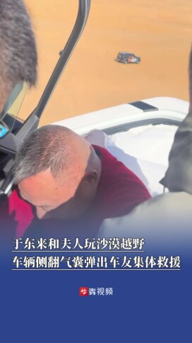 于东来和夫人玩沙漠越野车辆侧翻气囊弹出,车友集体救援
