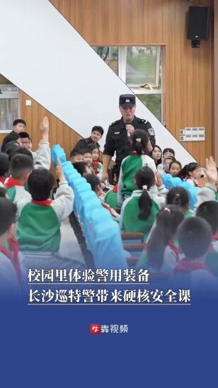 交警俯身帮小女孩系好头盔,小女孩递出棒棒糖回应善意
