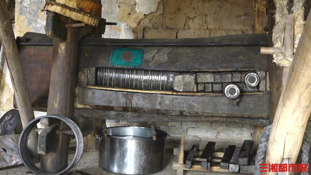 眼下又到了茶油开榨的季节,在这家老式的手工榨油坊,师傅们坚持着传统木榨油技艺。