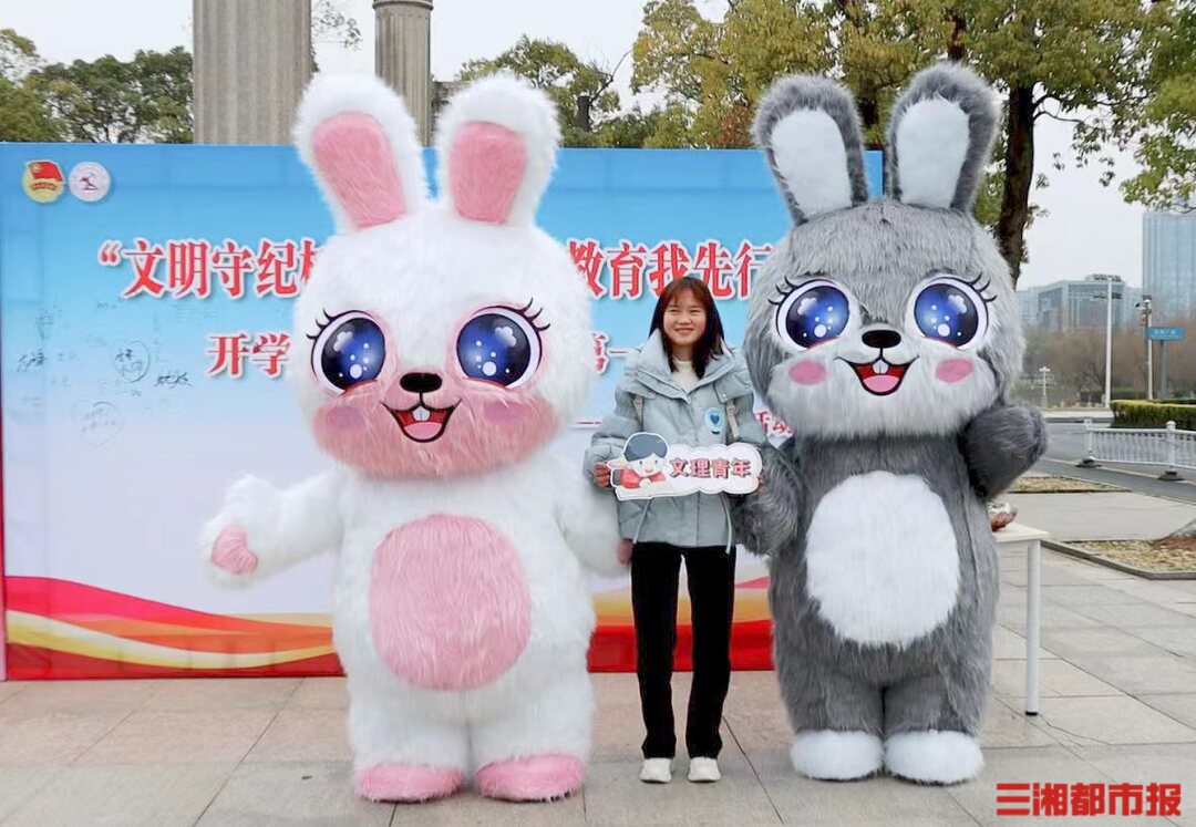 近日,经历了“超长寒假”,湖南文理学院迎回了从全国各地返校的学子。开学当天,校门口两只可爱的“福兔”吸引了不少学生围观。两只福兔扭动着呆萌的身体与返校学生打招呼,或张开双臂拥抱阔别多日的同学,同学们在福兔的指引下,来到学校精心制作的许愿墙前,写下新学期愿望。