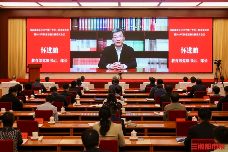 会上宣读了《教育部 国家语委关于表彰国家通用语言文字推广普及先进集体和先进个人的决定》,授予178个单位“国家通用语言文字推广普及先进集体”称号,294名个人“国家通用语言文字推广普及先进个人”称号,其中湖南省共有5个单位和8名个人获奖。