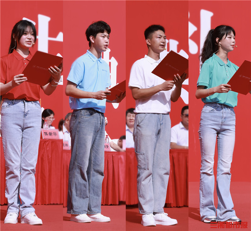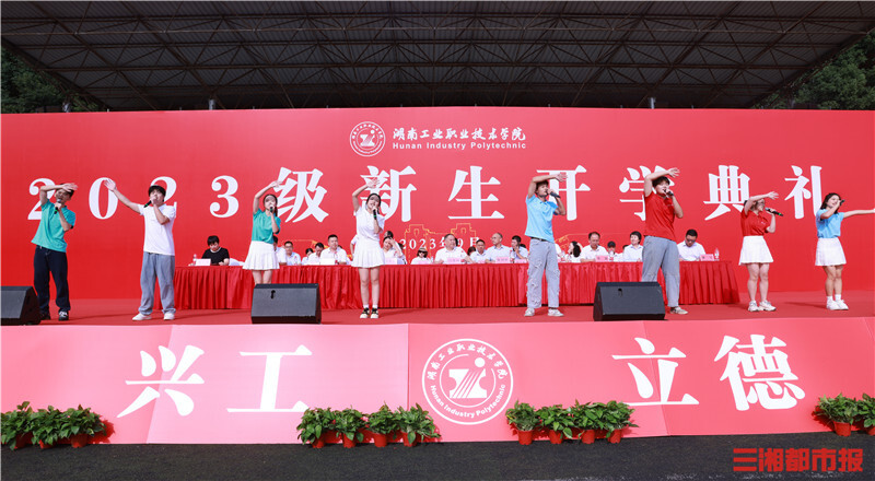 三湘都市报9月17日讯(通讯员 王露曼 张晨莲 全媒体记者 刘镇东)“脚踏着青春的节拍,我们又站在了崭新的起点。”“携着祝福,带着嘱托,我们相约在湖南工业职业技术学院。”……9月16日,湖南工业职业技术学院2023级新生开学典礼现场,郝稹炜、秦珂馨、吴俊杰、鲍滢四位新生领诵《踔厉奋发千帆竞 勠力同心再启程》,从坚定理想技能报国、全力以赴扎实学习、紧跟时代追求卓越、脚踏实地奋斗担当四个方面讲述了青春最好的“模样”。