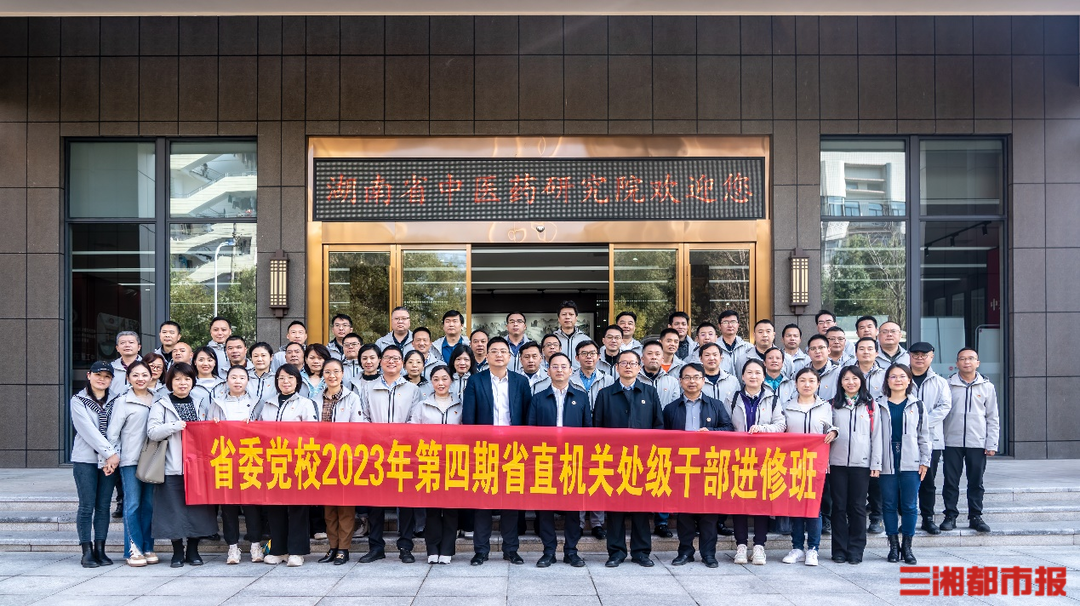 三湘都市报11月30日讯(通讯员 郭永祥 刘亮 陈文娟 全媒体记者 黄京 杨斯涵)聚焦中医药和绿色低碳发展,进一步提升履职能力,11月28日,省委党校2023年第四期省直处级干部进修班全体学员,先后赴湖南省中医药研究院、中铁城建集团房地产开发有限公司等单位开展现场教学,以实物、实景、实例为载体,将“课堂”变“现场”,以讲解变互动的方式进行现场教学活动。