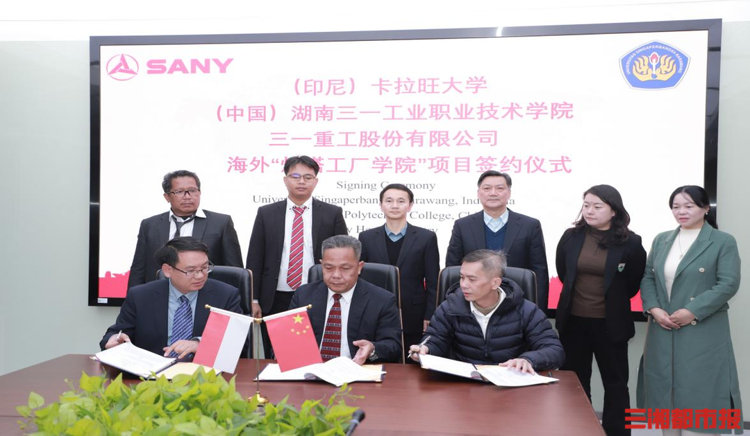 三湘都市报12月27日讯(通讯员 刘文 高妍 全媒体记者 杨斯涵 黄京)12月26日,湖南三一工业职业技术学院(以下简称三一职院)与印尼卡拉旺大学和三一重工印尼公司举行海外“灯塔工厂学院”项目签约仪式。