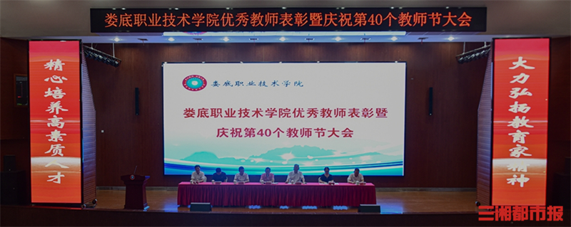 湖南日报9月12日讯(通讯员 黄惠妮 谢承艺 全媒体记者 刘镇东)为庆祝第40个教师节,表彰为教育事业做出突出贡献的优秀教育工作者,大力弘扬教育家精神,9月10日下午,娄底职业技术学院举行优秀教师表彰暨庆祝第40个教师节大会。