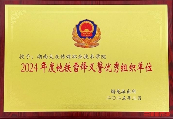 湖南日报3月21日讯(通讯员 杨乐 黄骊 杨雨晴 张辛蕤)近日,在长沙市公安局公交治安分局蟠龙派出所年度表彰大会上,湖南大众传媒职业技术学院被授予“2024年度地铁雷锋义警优秀组织单位”。该校12名学生志愿者荣获“优秀地铁雷锋义警”称号,校团委黄骊、杨雨晴2位老师荣获“优秀指导老师”称号。