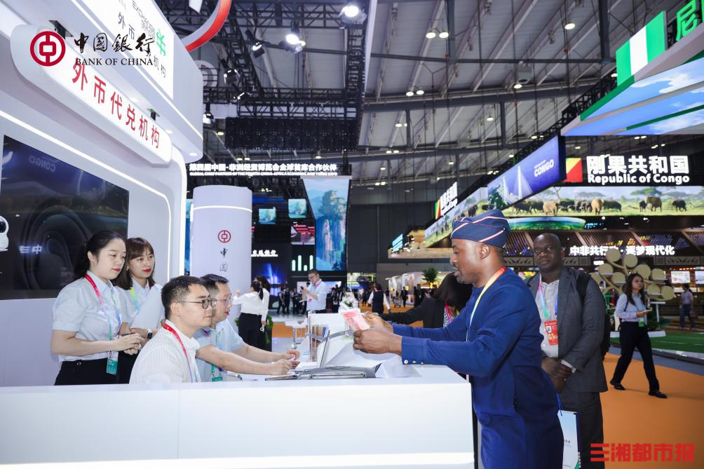 6月12日至15日,第四届中国-非洲经贸博览会在湖南长沙举办。中国银行湖南省分行充分发挥跨境金融服务优势,在展馆核心区域设立外币代兑机构服务点,为各国客商提供便捷、安全的外币兑换服务。