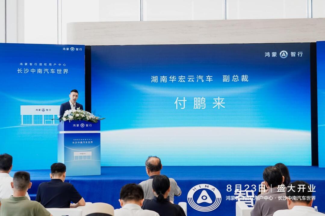 湖南华宏云汽车副总裁 付鹏来先生在致辞中表示:“鸿蒙智行中南店以鸿蒙座舱打通数字生态,以华为ADS智驾重塑出行边界。这里不仅是智慧汽车的展厅,更是未来出行方式的孵化场,让湖湘人民率先触摸科技脉动。
