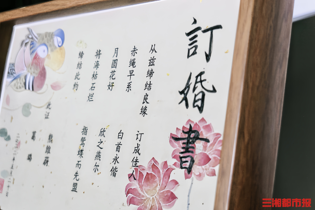技艺的创新,最终是为了承接更多当代人的情感。刘昱含记得一对相爱七年的情侣,不顾家人反对,历经异地艰辛。婚前特意找到她,希望用两人的发丝绣婚书。“女孩说,戒指誓言是形式,而这封婚书,才是我们七年感情最真实的总结,是彼此生命交托的证明。”刘昱含回忆道。