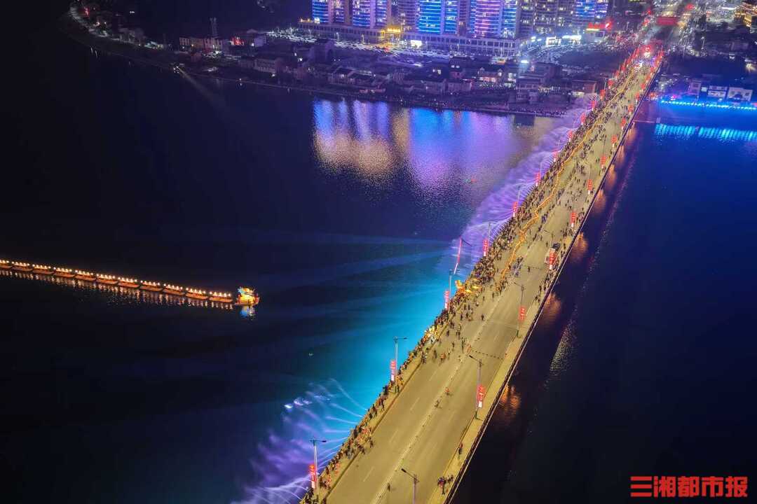 2月21日晚,张家界市慈利县澧水河畔流光溢彩、万人空巷。第四届慈利板板龙灯艺术季核心主题活动正式开始。