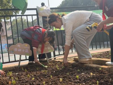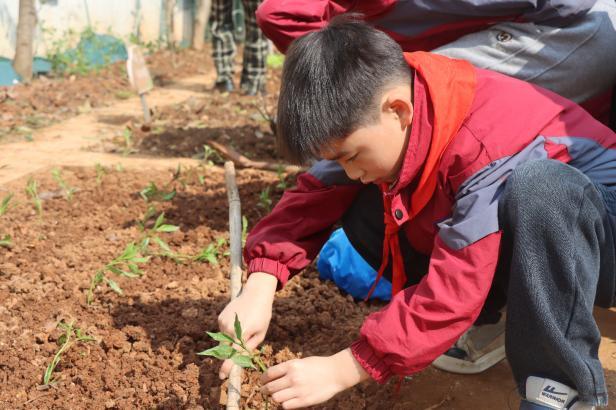活动中,孩子们根据班级认领的“责任田”,种植辣椒、番茄、草莓等多种蔬果。特别值得一提的是,融合班学生在家长陪同下,与普通班同学结对协作,挥锹培土、提水浇灌,在劳动中传递友爱。本次种植的菜苗全部由各班前期生菜义卖所得购买,寓意“绿色循环,爱心传递”。