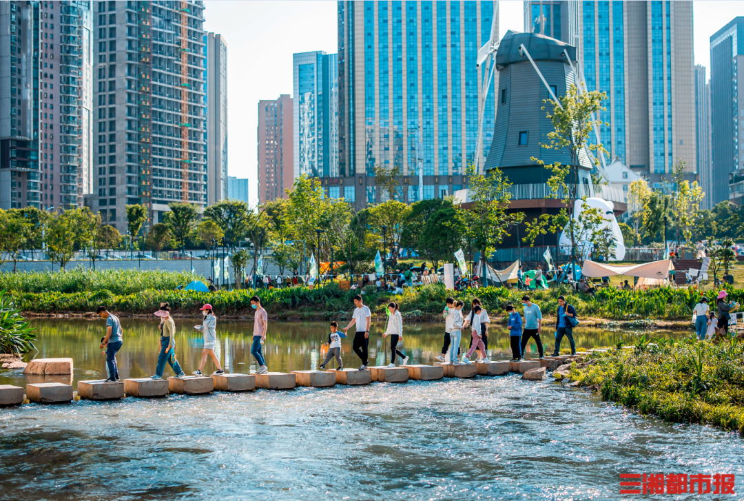 河岸的风轻抚脸庞,休闲骑行,沿河慢步,打羽毛球,开放式休闲广场及健身步道组成各式各样的运动场所,步子也随着天气变得轻快起来!