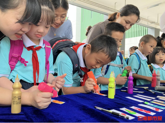 学校还为孩子们准备了许多神秘礼物,孩子们在一体机前,欢呼雀跃着点击属于自己的礼物,在拿到“抱抱卡”“免作业卡”时,孩子们脸上满是按捺不住的快乐。接下来便是充满趣味的,体现孩子们心灵手巧的流体书签制作,自己配色,自己动手,在孩子们灵活操作下,一张一张富有巧思的流体书签就这样诞生了。这一活动可以发散孩子们的创造思维,让孩子们的巧思都由巧手制作出来。最后便是开动脑筋的看图猜成语,这是让孩子们学会思考,激发创造性思维的活动。孩子们解开一道道难题时,眉宇间全是成就感。