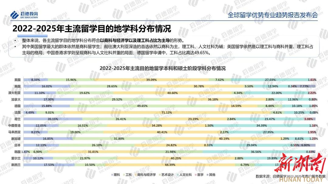“每年花几十万甚至上百万送孩子去留学,不如给他在国内置办一套房子”、“去美国留学生活成本太高,不如选择亚洲国家”……近段时间,一股“消费降级”风在国内留学市场兴起,不少学生和家长在留学时更看重性价比。10月25日,启德第62届国际教育展在长沙举行,记者从活动现场获悉,在科技发展与产业变革加速的背景下,海外高校加快新兴学科布局,为留学生带来广阔职业机遇。但与此同时,留学经历也正在回归教育的本质——为未来铺路,而非盲目攀比。