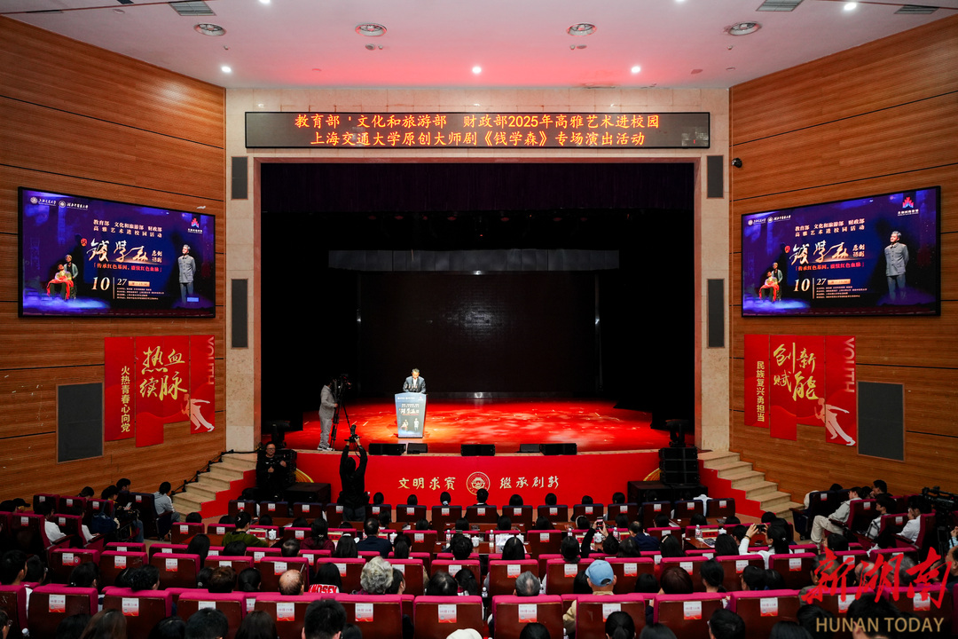 湖南省委教育工委委员、省教育厅党组成员余伟良指出,钱学森“五年归国路,十年两弹成”的传奇人生,生动诠释了“科学无国界,科学家有祖国”的崇高信念。他表示,高雅艺术进校园活动是文艺赋能学校美育与校园文化建设的重要工作载体,希望以此次活动为契机,推动湖南高校与上海交通大学深化合作,让湘沪合作之树结出更多硕果。