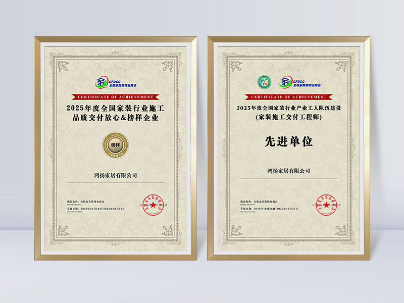 在本次活动中,鸿扬家装凭借卓越的高标准综合交付实力,再度荣膺“2025年度全国家装行业施工品质交付放心&榜样企业”,并获评“2025年度全国家装行业产业工人队伍建设先进单位”。作为中国定制家装开创者,鸿扬始终聚焦高品质家居市场,以行业领军者之姿,持续为万千家庭定制千人千面的“精致中国生活”。