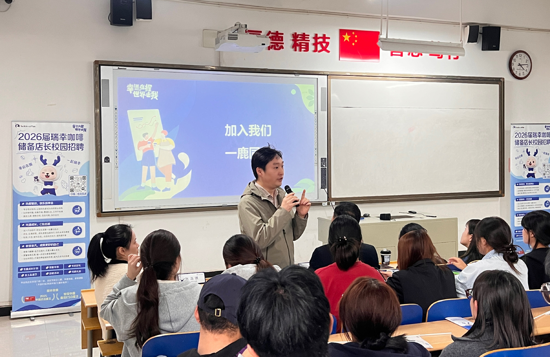 在随后进行的2026届校招宣讲会上,瑞幸招聘团队重点介绍了储备店长、产品研发、营销增长及职能支持四大核心岗位体系,并详细解读了“60小时咖啡师认证+252小时值班实操+2~3个月副店进阶”的阶梯式培养路径。企业同时公布了六险一金、员工饮品福利及灵活入职等保障政策,其中“不限专业、大专及以上学历可投”的宽泛条件受到学生广泛关注。现场设置的简历初筛及趣味互动环节,有效提升了沟通效率,气氛热烈。