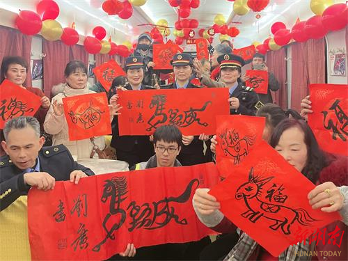 在中国铁路广州局集团公司长沙客运段怀化南线车队的K4807次、K9262次列车上,学校装备制造学院的春运志愿者们开展了一场“金马迎春”主题活动,让“文化进车厢”的理念在铁轨上落地生根。车厢内,同学们用心营造新春氛围,写“福”字、送祝福、表演舞蹈,欢声笑语中,浓浓年味在车厢里流淌。养机2501 班贺佳靓带来的舞蹈更是点燃全场,灵动的舞姿赢得阵阵掌声,旅客们纷纷举起手机,定格这份旅途中的意外惊喜与深深感动。当除夕夜的钟声在铁轨间回响,列车上的旅客们在欢声笑语中感受着跨越山海的温暖,这个特殊的除夕之夜,因这群青春身影而格外难忘。