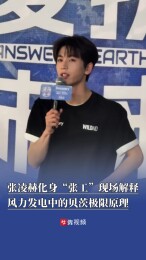 4月22日,北京英皇电影城,张凌赫的首部公益纪录片《凌探未来》定档会,张凌赫化身“张工”,现场解释风力发电中的贝茨极限原理。网友评论:突然觉得以前听不懂的都能理解了,这就是颜值+知识叠buff 的效果吗? 张凌赫毕业于南京师范大学电气与自动化工程学院,主修电气工程及其自动化专业。在片中,张凌赫解锁“电力实习生”(亦被称作“张工”)的全新身份,探索藏在风与电里的答案。(剪辑全媒体记者 李青)
