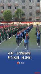 4月20日,湖南永州冷水滩滨江小学。课间操师生同跳《永冲锋》,音乐一响现场燃爆了。(剪辑 全媒体记者 李青)
