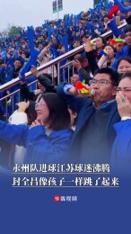 1月18日,2026九嶷山CMG群众足球邀请赛在永州市体育场打响揭幕战。东道主湘超冠军永州队对阵由前国脚荣昊领衔的齐鲁超冠军山东泰安队。江苏十三太保的球迷全部穿着“永冲锋”的队服,为永州队加油。永州队进球时,第一个出资打广告,祝贺湖南永州夺得“湘超”冠军的苏州网友封全昌在观众席上像个孩子一样跳了起来。(剪辑 全媒体记者 李青)