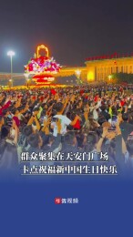 10月1日零点,来自四面八方的群众聚集在天安门广场,挥舞国旗倒计时卡点祝福新中国生日快乐。拍摄者:在现场泪点好低,大家都哭得稀里哗啦的。(剪辑 李青)
