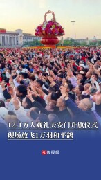 10月1日,天安门广场举行国庆升旗仪式,有12.1万人到场观礼,并放飞1万羽和平鸽。来看现场壮观的观礼人潮和漫天的和平鸽海。(剪辑 李青)