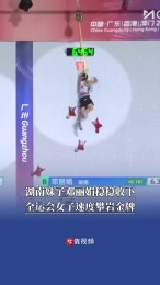 11月14日晚,第十五届全运会攀岩速度决赛在广州大学城体育中心极限运动中心举行。在女子个人项目比拼中,巴黎奥运会亚军、湖南黄金攀岩队队员邓丽娟发挥出色,在决赛中击败浙江队周娅菲,为湖南体育代表团稳稳拿下本届全运会第六枚竞技项目金牌。(全媒体记者 李致远 叶竹)