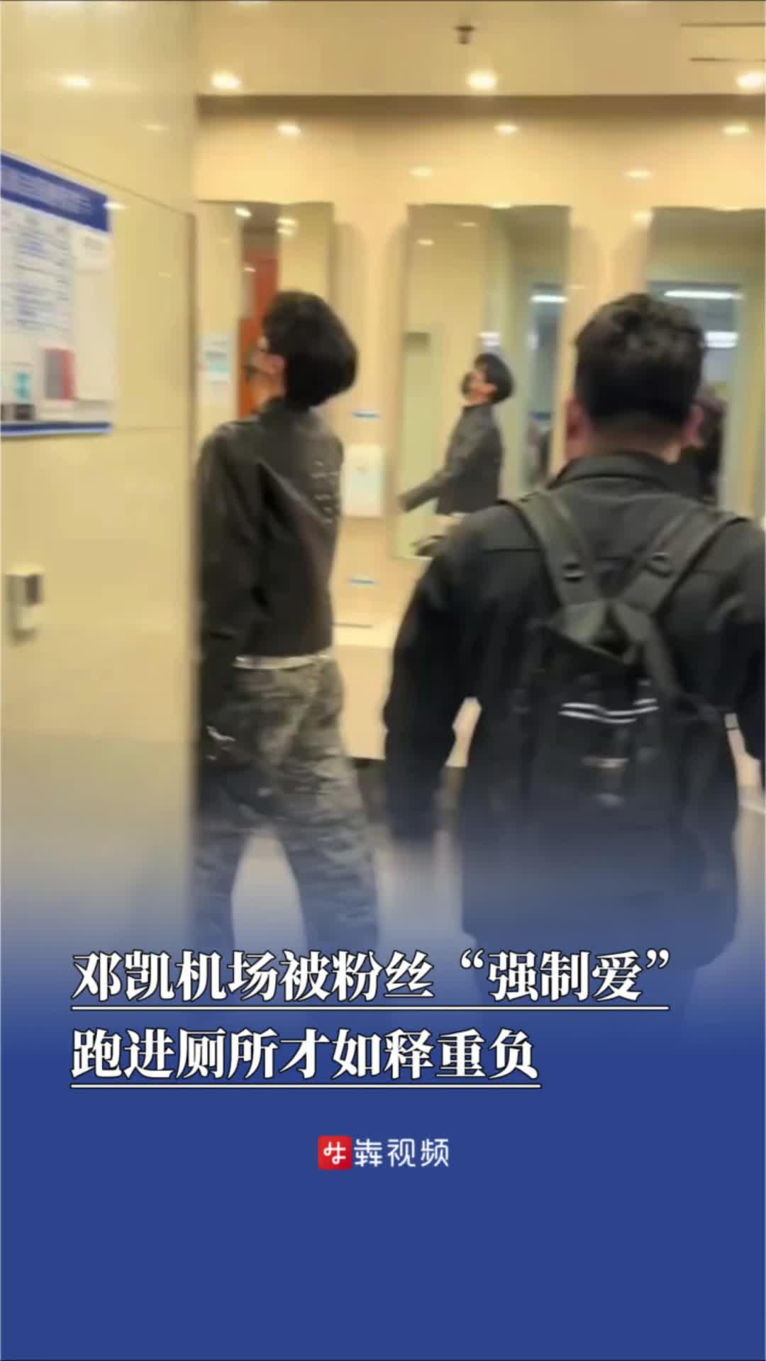 邓凯机场被粉丝“强制爱”,大喊“我不行了我受不了了”,直到跑进厕所才松了口气