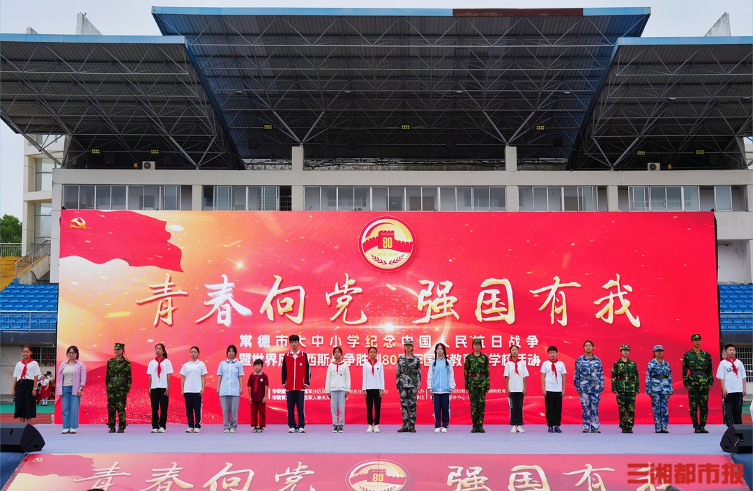 湖南日报9月29日讯(通讯员 张雪鸾 彭晓彤)9月28日上午,“青春向党 强国有我”——常德市大中小学纪念中国人民抗日战争暨世界反法西斯战争胜利80周年国防教育进学校主场活动,在湖南文理学院举行。来自湖南文理学院、常德市三中、武陵区育才小学等学校的大中小学生1300余人现场参加活动。