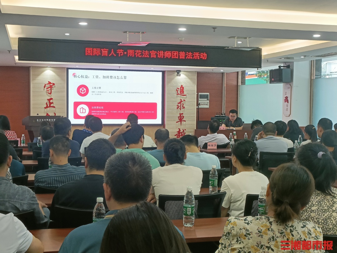 三湘都市报10月11日讯(文/视频 全媒体记者 杨昱)国际盲人节即将到来,10月10日,湖南省残联携手长沙市雨花区人民法院,来到长沙市中医康复医院,为盲人按摩从业人员送来一堂普法公开课。活动现场,雨花区法院法院分享了涉劳动领域的普法,并现场为盲人按摩从业人员答疑解惑。盲人按摩师刘娟娟听讲后表示:“这堂普法课很接地气,以前我们听过劳动法,但是一知半解,现在听法官这么一讲,瞬间就明白了。”