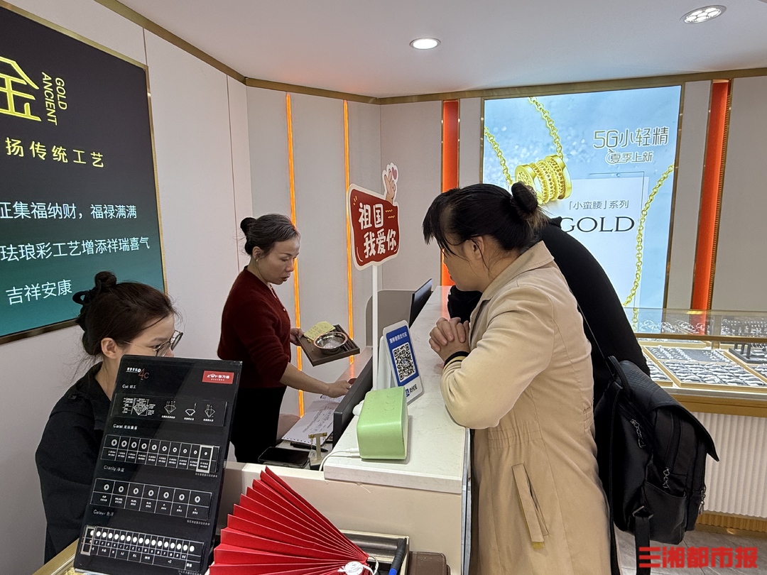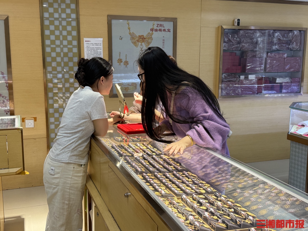 “今天金价在943元/克左右,比上周又涨了近30元,门店售价会跟着实时大盘价调整。”在名汇达黄金珠宝交易中心9楼的人民金行工厂店工作人员朱女士一边给顾客称重旧金,一边向记者介绍。她面前的托盘上,整齐码放着几件待置换的旧金首饰,戒指、项链、手镯一应俱全。就在当天下午,家住长沙开福区的刘女士刚用5克左右的旧金项链,换走了一条7.85克的蝴蝶镯链,“加上补的克重费和工费,一共花了不到3000元,要是直接买新的,这条链得花7000余元,这么一算比买新金省一半还多。”刘女士拿着新首饰,对着镜子反复打量,语气里满是满意。