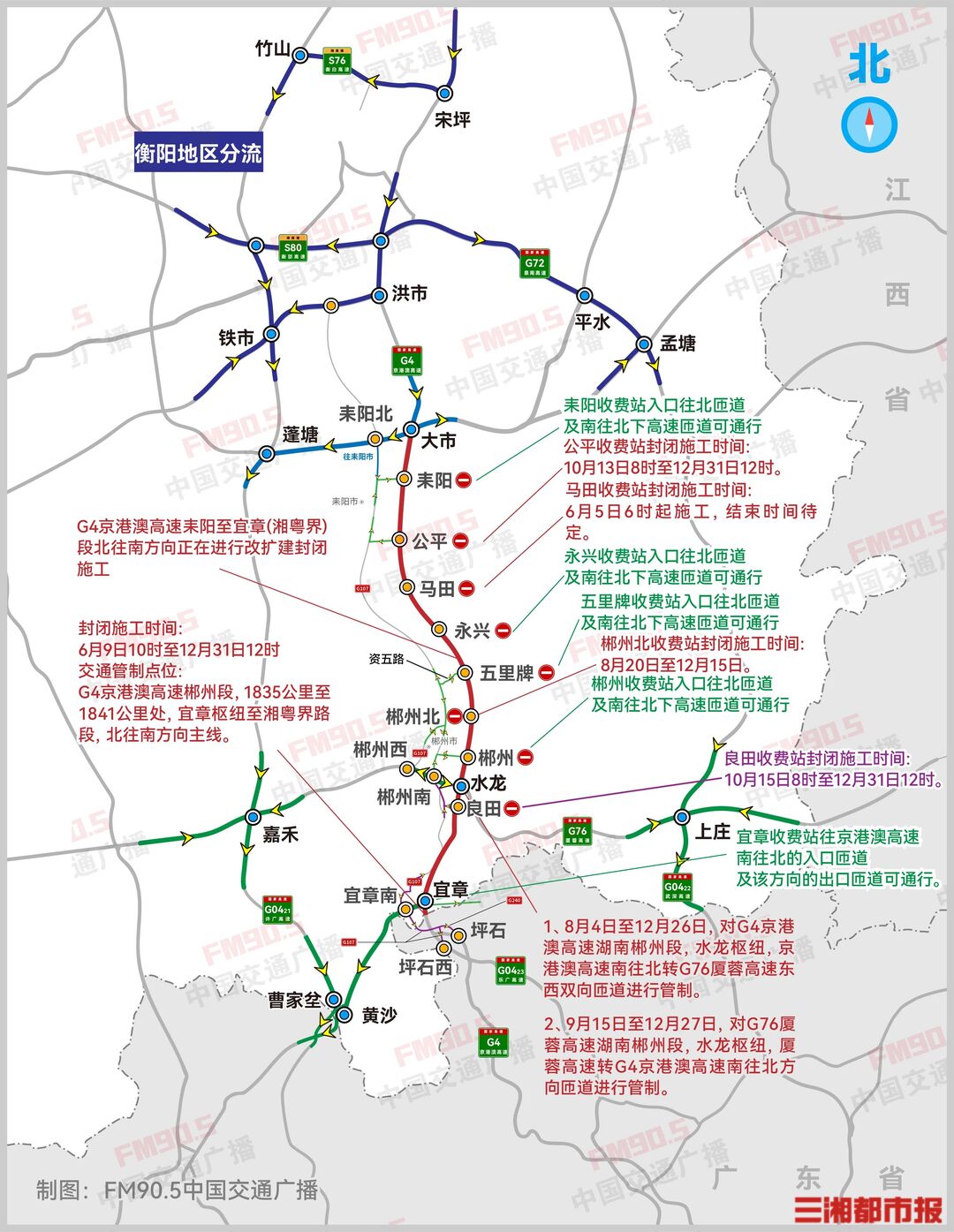 三湘都市报10月14日讯(全媒体记者 李致远)10月14日,记者从湖南高速集团郴州分公司获悉,为保障G4京港澳高速耒阳大市至宜章(湘粤界)段改扩建工程顺利推进,自10月15日起,将对该高速郴州段的良田收费站进行封闭施工。封闭施工时间为10月15日8时至12月31日12时,期间禁止所有车辆通行,过往车辆需提前规划绕行路线。