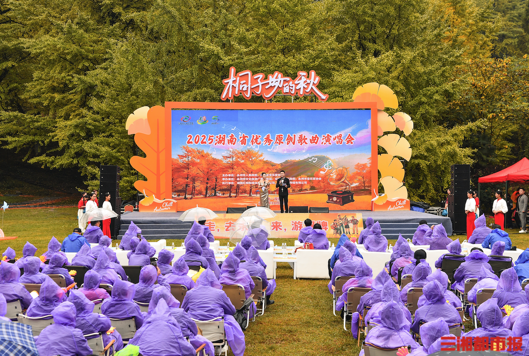 三湘都市报11月10日讯(全媒体记者 曾冠霖)秋意正浓,银杏鎏金。11月9日,“桐子坳的秋” 2025 湖南省优秀原创歌曲演唱会在双牌县桐子坳景区温情开唱。金黄银杏与悠扬歌声相映,原创旋律与文旅风情相融,呈现了一场兼具听觉享受与视觉美感的文旅盛宴。