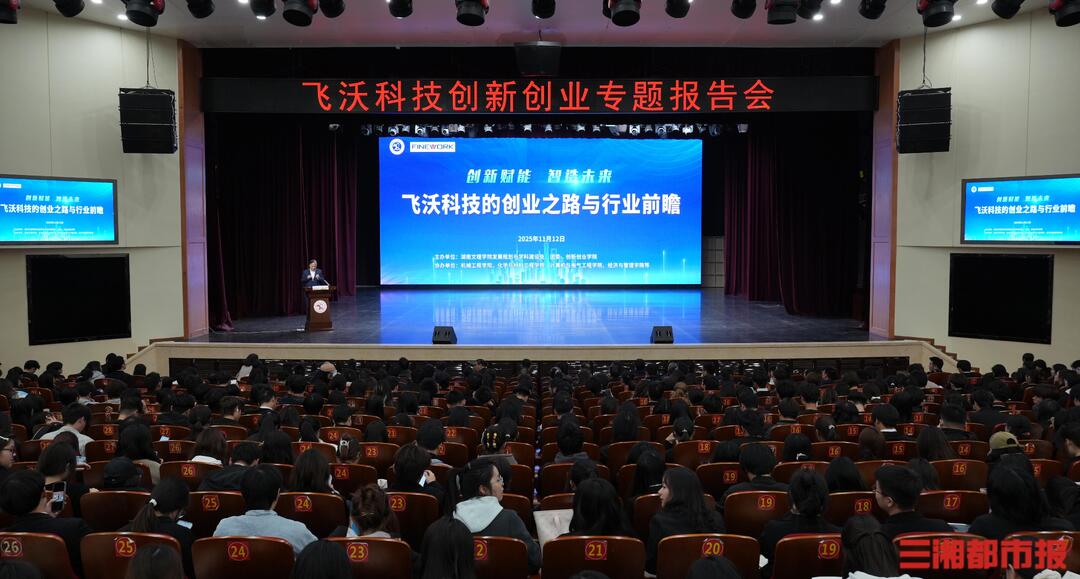 湖南日报11月14日讯(通讯员 刘佳妮 谭艾琳)校企携手育新才,创新逐梦启新程。11月12日,飞沃科技创新创业专题报告会在湖南文理学院艺术中心举行。湖南飞沃新能源科技股份有限公司董事长张友君与30余名企业高管团队走进校园与大学生面对面交流创新创业之路。学校1300余名师生参与交流。