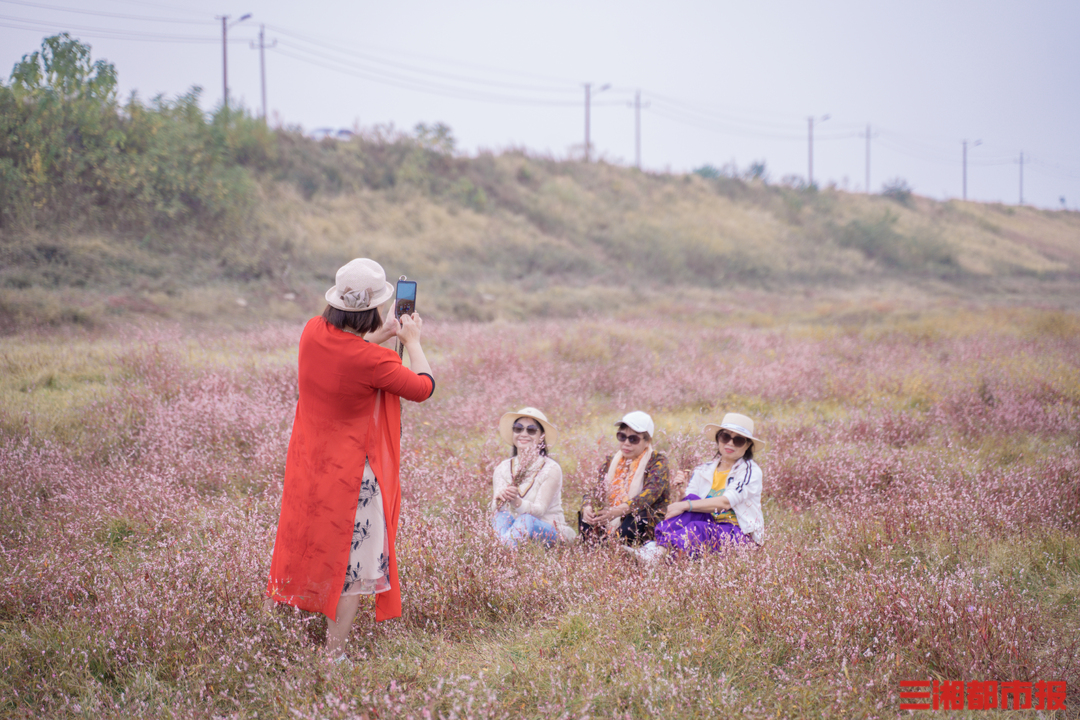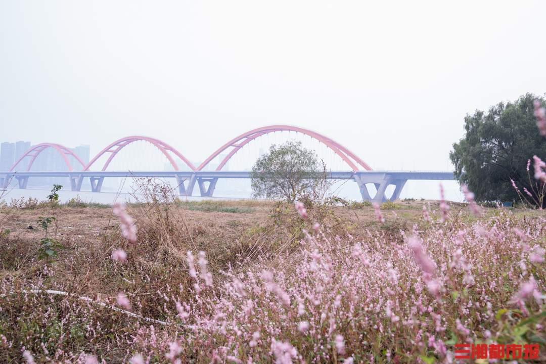 不仅长沙“粉色上线”,在湘潭县河口镇白米村的涓水河畔,大片野生水蓼花迎来盛花期,铺陈出一片初冬难得的浪漫花海,连日来吸引了不少摄影爱好者前来取景。